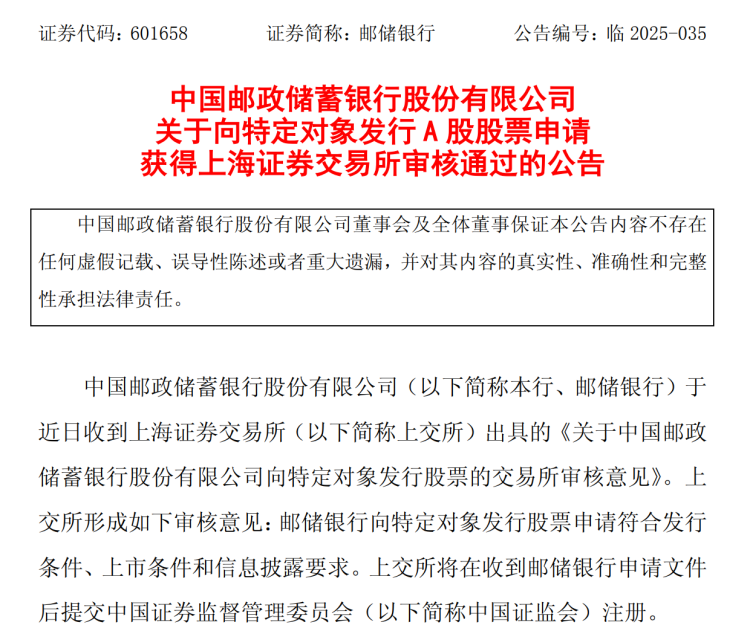 【环球网金融综合报道】日前配资股票门户网,中国银行、交通银行、邮储银行发布公告称,公司向特定对象发行A股股票申请已获得上海证券交易所审核通过。